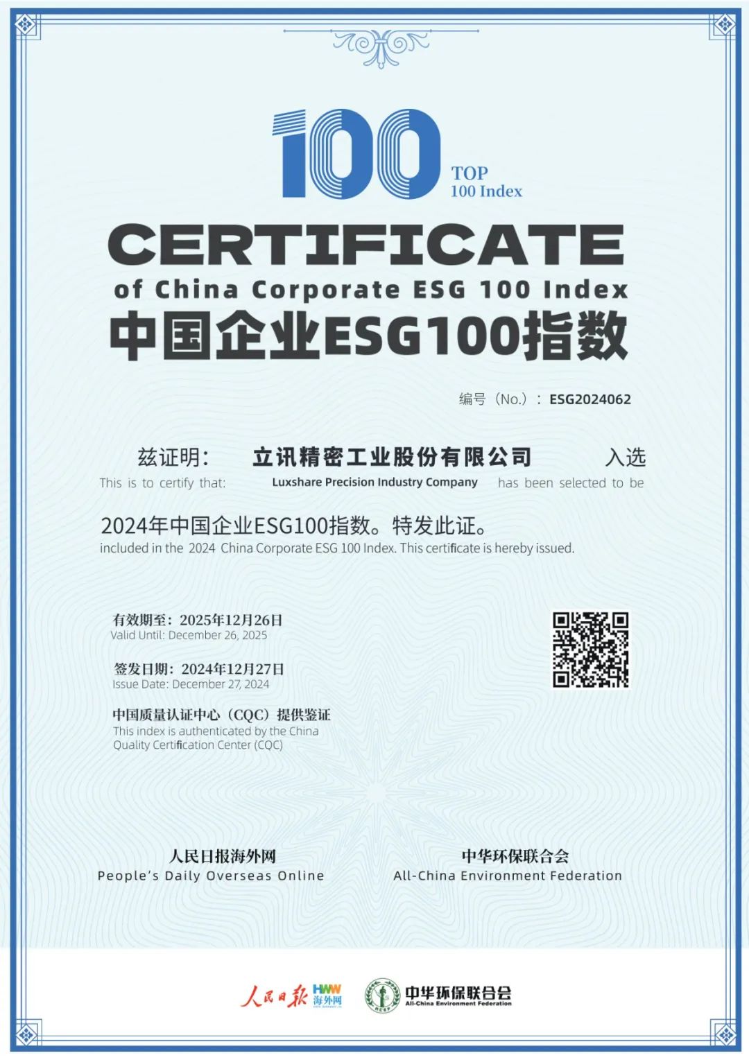 克日,由人民日报外洋网与中华环保团结会团结举行的“第二届新时代中国品牌形象外洋撒播论坛暨2024中国企业ESG蓝皮书宣布会”在京召开。为讲好中国品牌与中国企业ESG故事,推动中国企业品牌形象外洋撒播,大会征集多份ESG优异案例后纳入《企业ESG蓝皮书:中国企业情形、社会与治理报告(2024)》,并专设“2024中国企业ESG100指数”以对优异案例举行表扬。K1体育细密依附在可一连生长领域的卓越体现,乐成入选“2024中国企业ESG100指数”,充分彰显了公司“将ESG落地生根,引可一连生长枝繁叶茂”的刻意和实力。